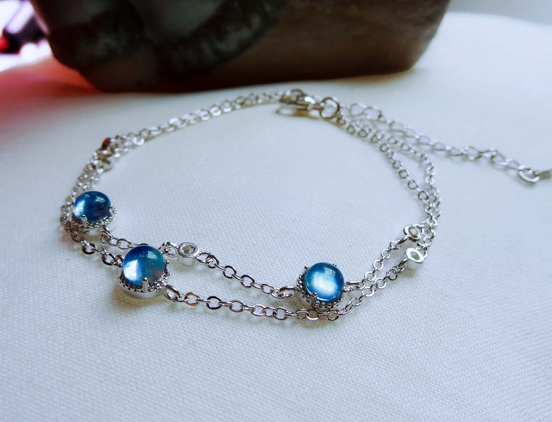 Aquamarin Doppel-Kette Armband Sternfall Kollektion vereint Eleganz und Komfort – perfekt für den Alltag und besondere Anlässe. Material: Kupfer mit hochwertiger Silberbeschichtung, angenehm zu tragen und langlebig.