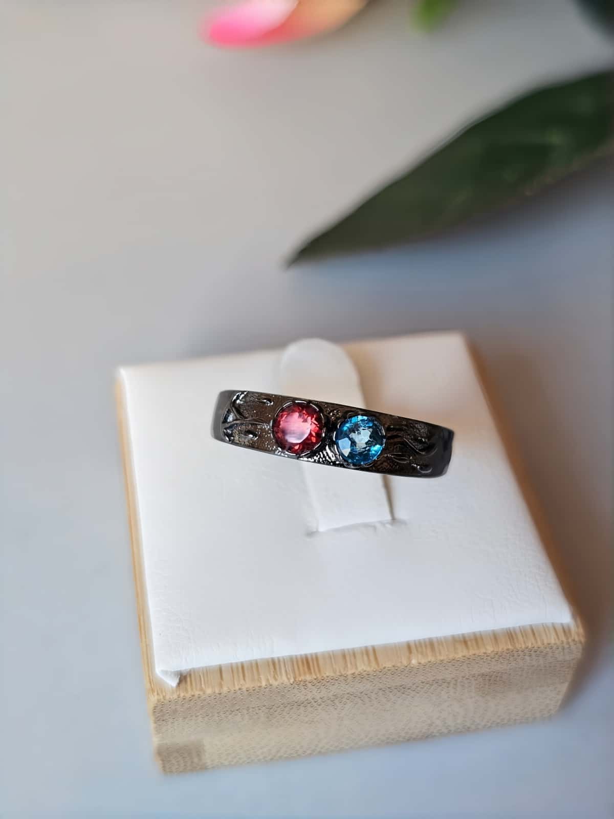 Damenring „Dark Lumina“ mit Rot-Blau-Zirkonia, in perfekter Mix aus harter, maskuliner Ästhetik und glamourösem Funkeln. Unabhängigkeit und einzigartigen Stil. | Ringe, Handschmuck ⋅ Trendige Design Ringe | ||