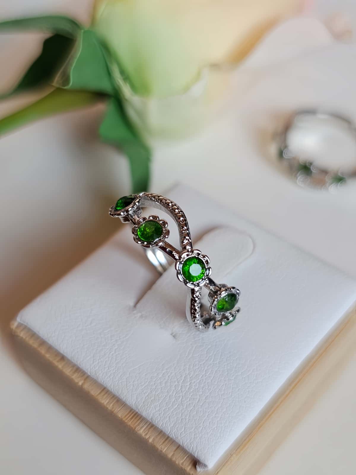 Damenring mit Stein grünem Diopsid Blütenkrone Designd – Eleganter Ring mit Kristallbesatz, offen und funkelnd | Ringe, Handschmuck ⋅ Trendige Design Ringe | ||