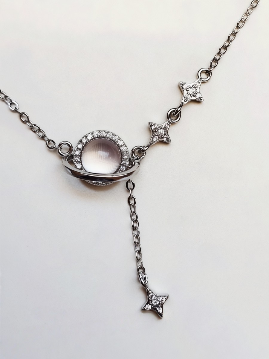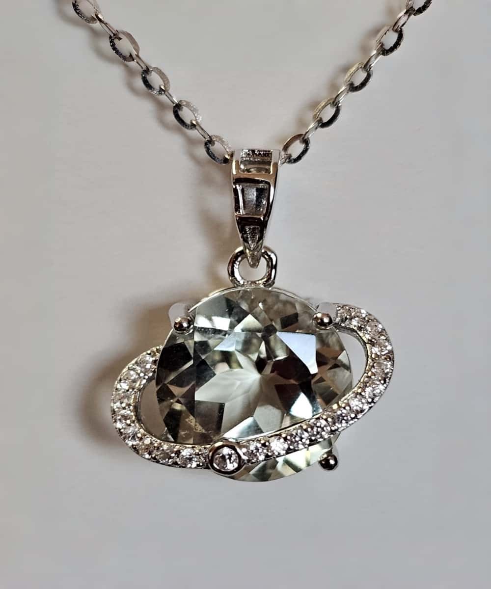 Ein zauberhafter Halskette Damen mit Stein Grün Quarz in Planeten Stereo Design– stilvoll, elegant und voller Energie. Perfekt als Geschenk oder modisches Highlight für jeden Anlass. | Halsketten, Charm, Anhänger ⋅ Silber Halsketten | ||