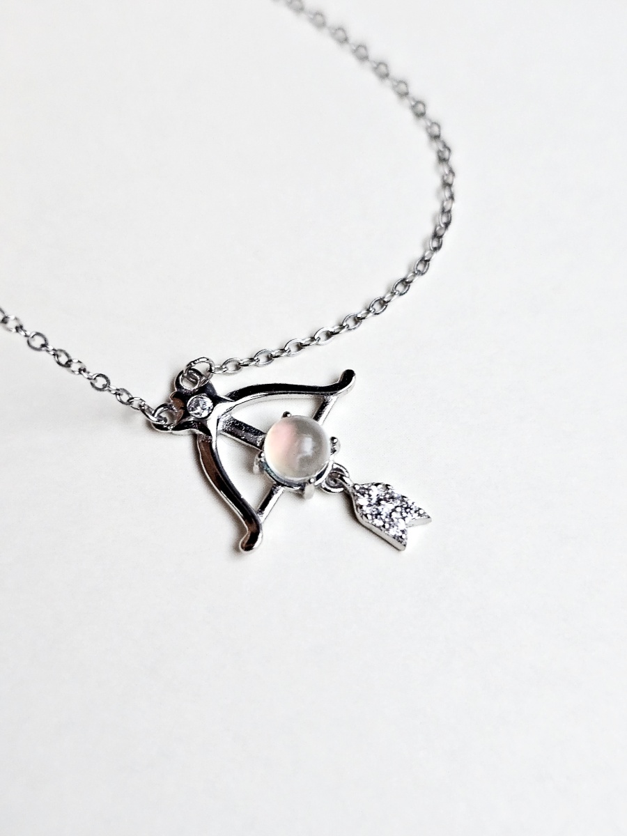 Die Damen Silber Halskette mit Mondstein im eleganten Bogenschützen-Design steht als Glückskette für das Sternzeichen Schütze. Madagaskar-Mondstein und Zirkonia verbinden Symbolik mit zeitloser Eleganz. | Silberschmuck ⋅ Silber Halsketten | ||